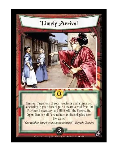Limited: Target one of your Provinces and a discarded Personality in your discard pile. Discard a card from the Province if necessary and fill it with the Personality. Open: Remove all Personalities in discard piles from the game