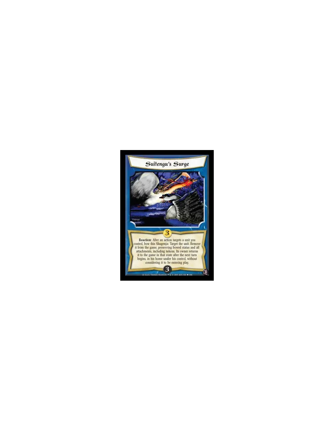 Reaction: After an action targets a unit you control, bow this Shugenja: Target the unit. Remove it from the game, preserving bowed status and all attachments, including tokens. Its owner returns it to the game in that state after the next turn begins, in his home under his control, without considering it to be entering play.