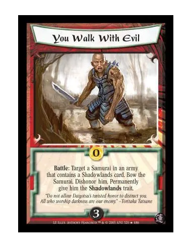 Battle: Target a Samurai in an army that contains a Shadowlands card. Bow the Samurai. Dishonor him. Permanently give him the Shadowlands trait