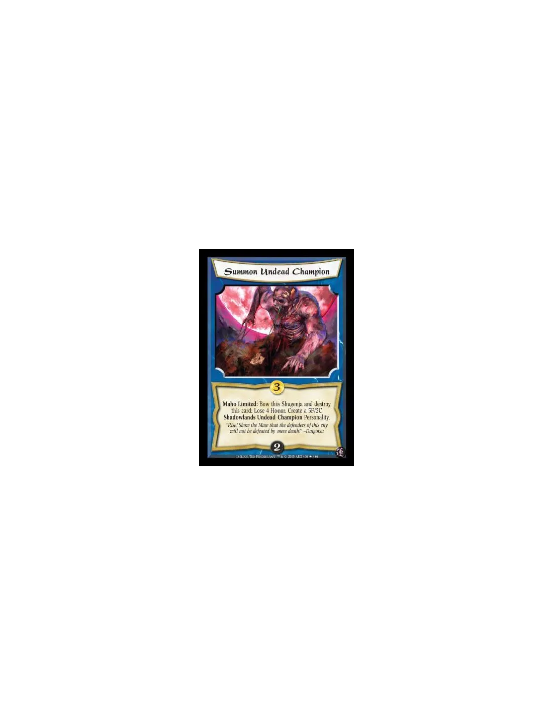 Maho Limited: Bow this Shugenja and destroy this card: Lose 4 Honor. Create a 5F/2C Shadowlands Undead Champion Personality
