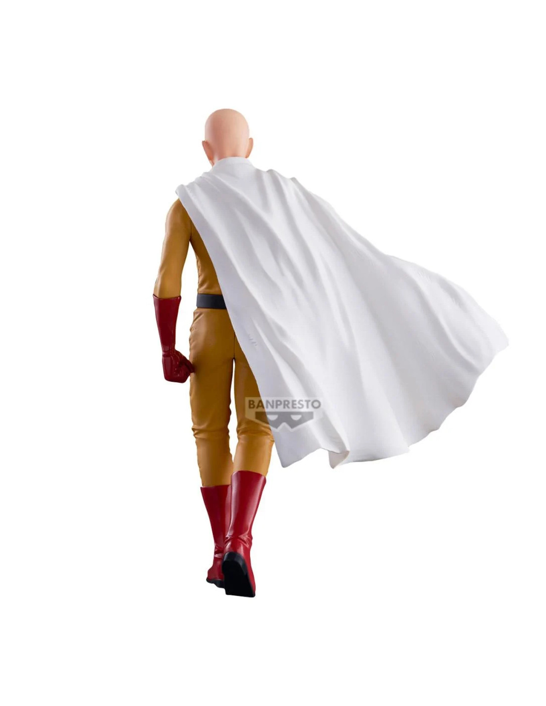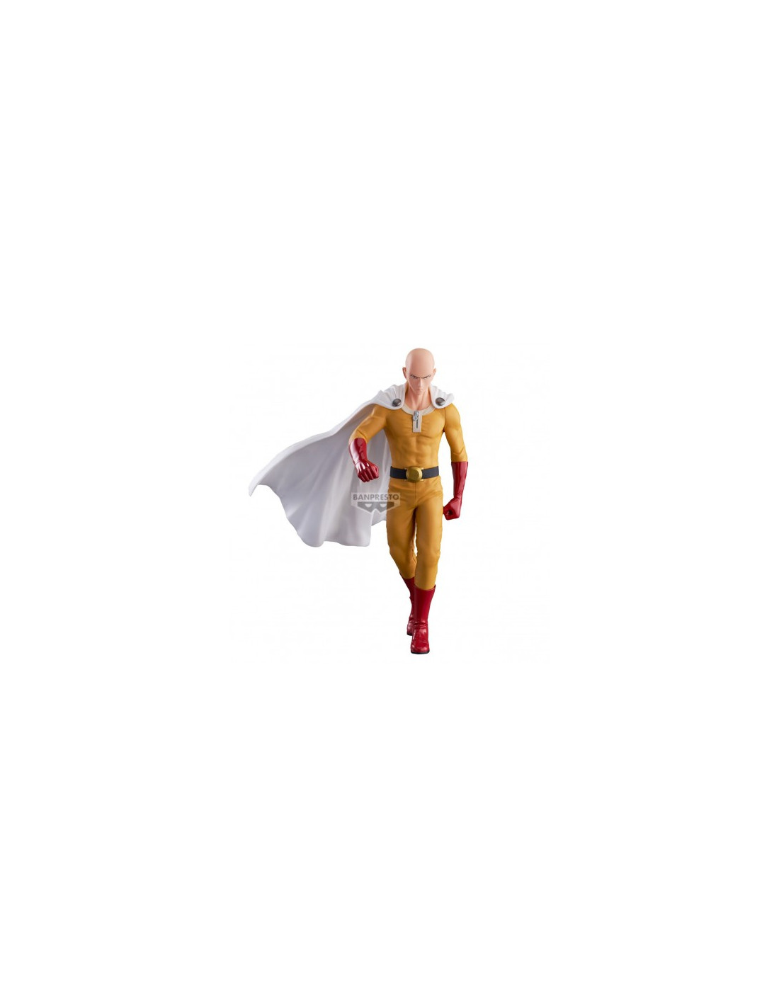 Collectible figure of Saitama from One Punch Man, part of Banpresto/Bandai’s Grandista line. It stands about 27 cm tall, made of PVC and ABS with anime‑accurate details, featuring the hero in his iconic pose with his yellow suit, gloves, and cape. It captures his calm yet powerful presence, perfect for fans and collectors, ideal for display on shelves or in display cases.