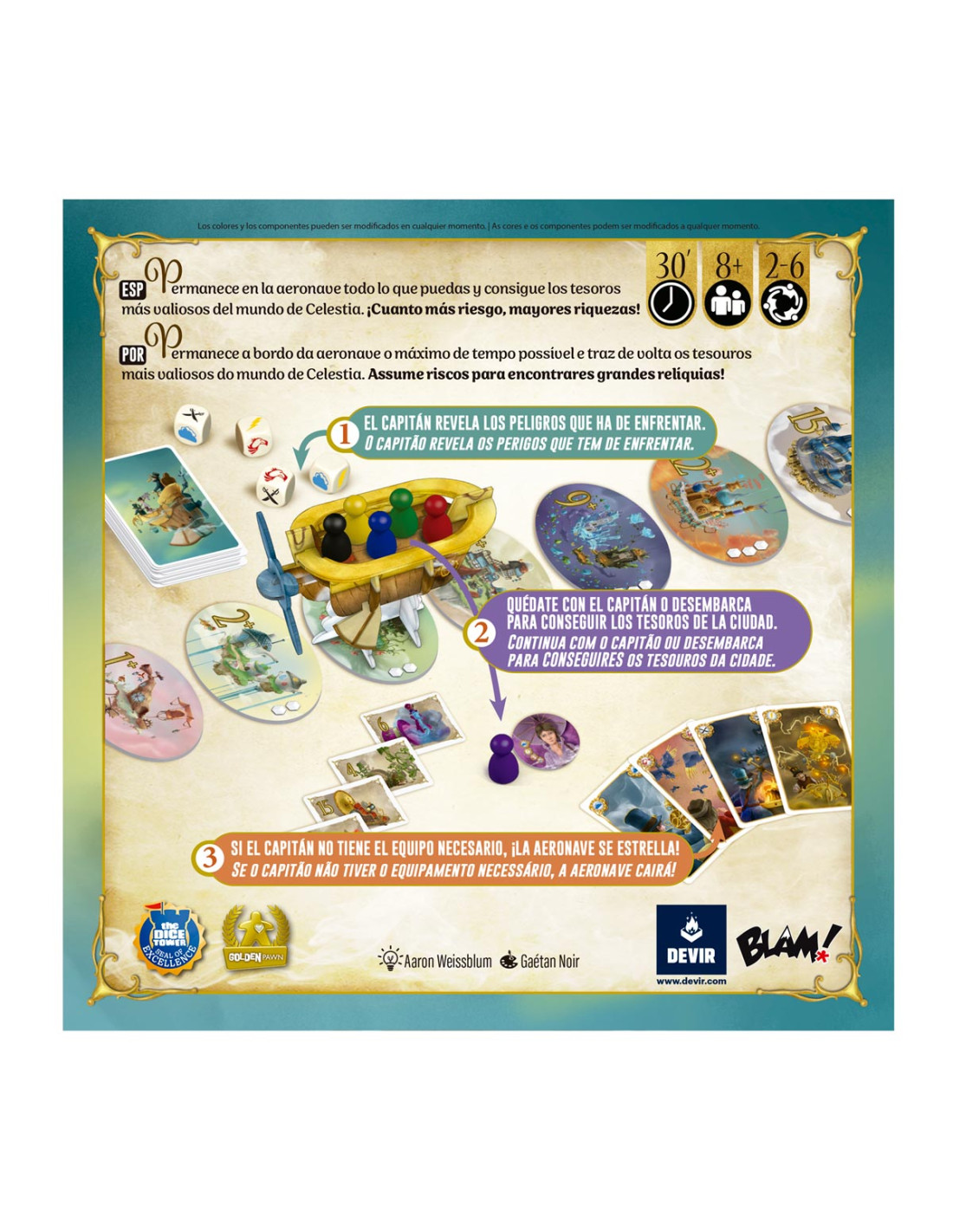 A beloved family classic returns! In Celestia, players travel in search of treasures through different cities. However, they must decide when to get off the airship, since the farther it goes, the greater the chance of an accident. Still, the treasures in the most distant cities are always better… Stay aboard the airship as long as you can and claim the most valuable treasures in the world of Celestia. The greater the risk, the greater the reward!