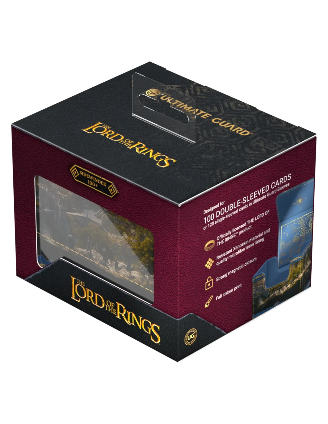 l Sidewinder 100+ Xenoskin es una caja para mazo TCG de alta calidad que ofrece protección premium para las cartas gracias a su resistente material Xenoskin, su forro interior de microfibra y su fuerte cierre magnético, todo mientras proporciona un acceso fácil y cómodo a las cartas del interior. Las cajas para mazo de la edición oficial The Lord of the Rings™ "Places of Middle-earth" de Ultimate Guard están impresas a todo color y están optimizadas para contener hasta 100 cartas con doble funda en fundas Ultimate Guard*.