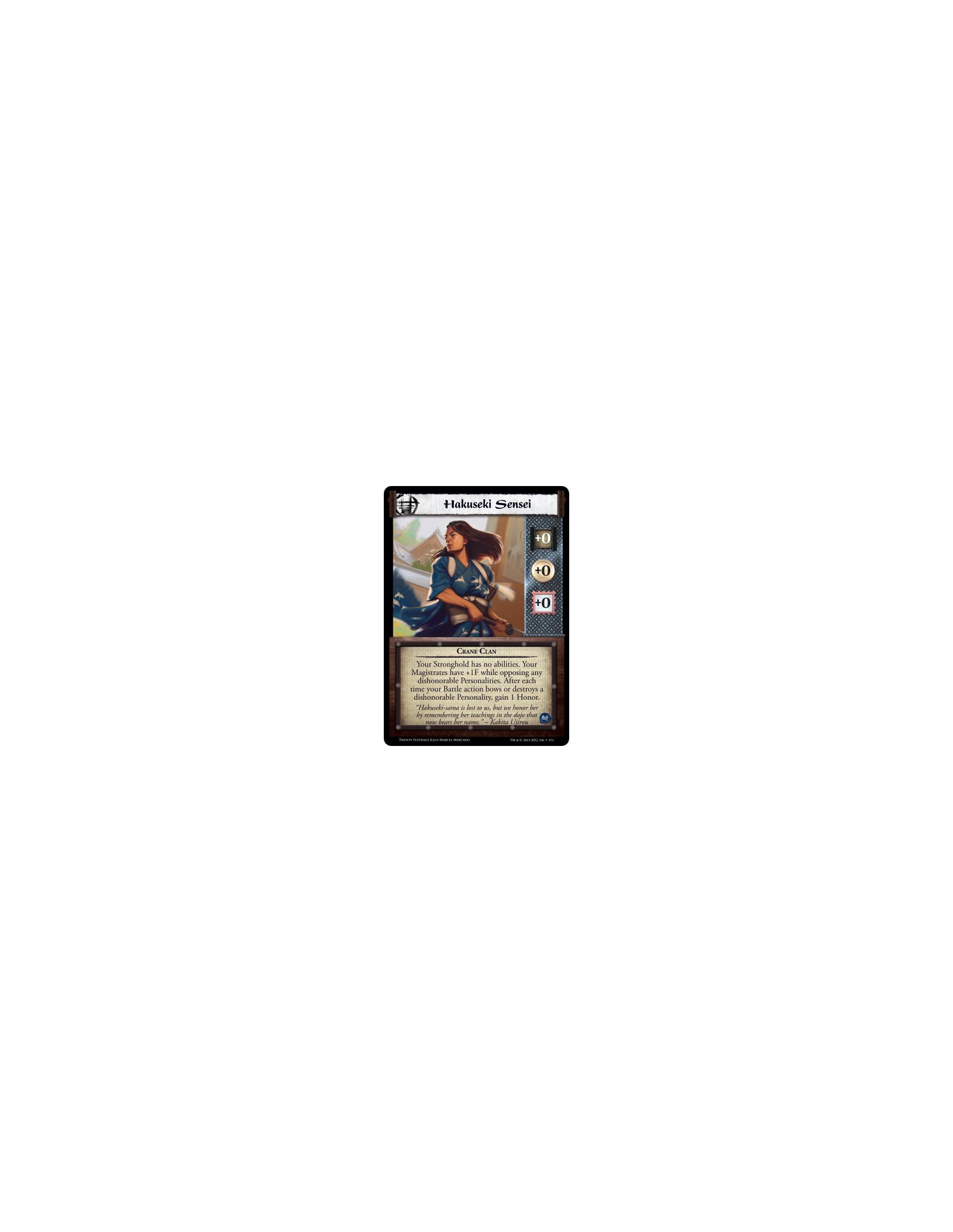 Your Stronghold has no abilities. Your Magistrates have +1F while opposing any dishonorable Personalities. After each time your Battle action bows or destroys a dishonorable Personality, gain 1 Honor.