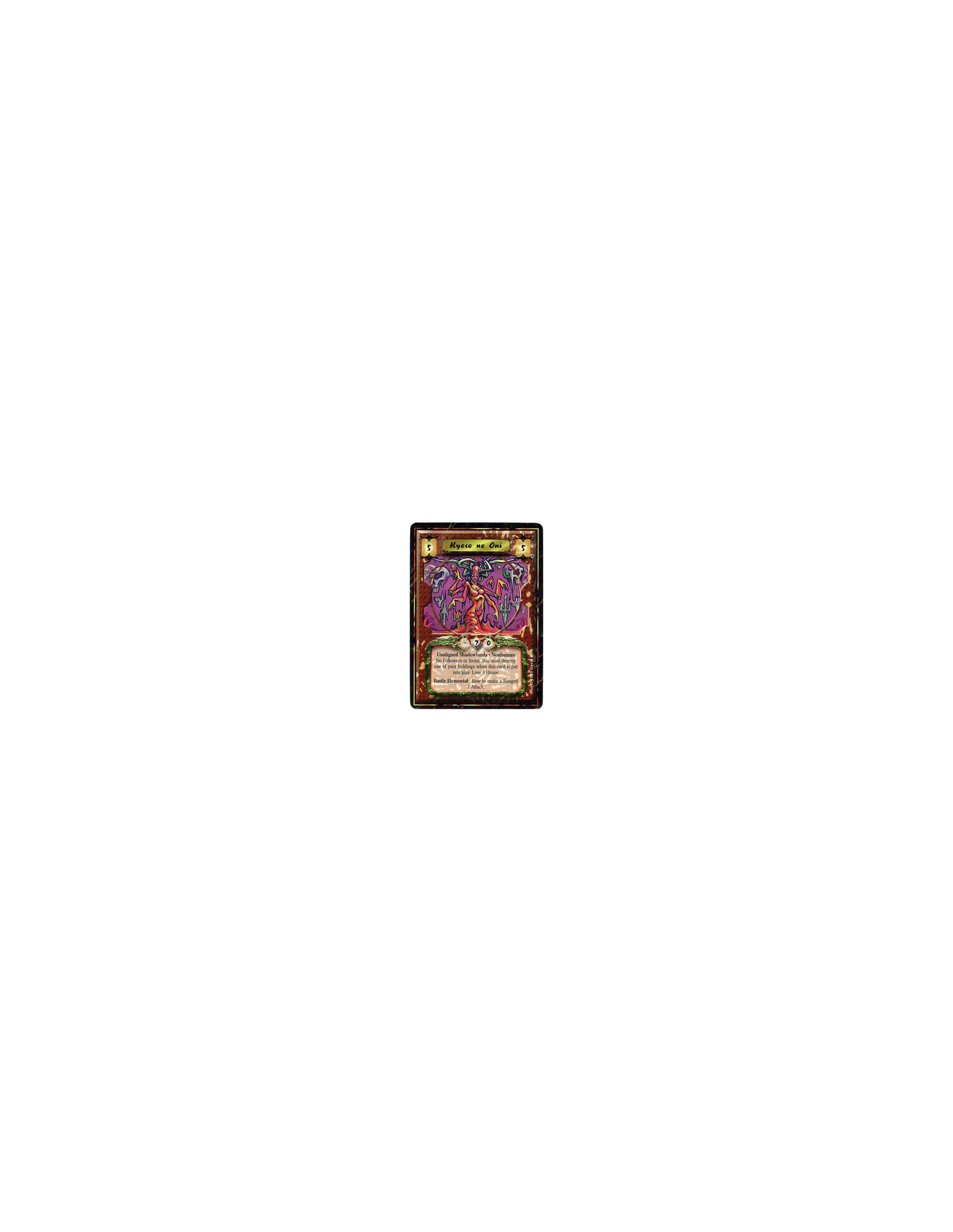 After Kyoso enters play: Lose 3 Honor and destroy one of your Holdings.