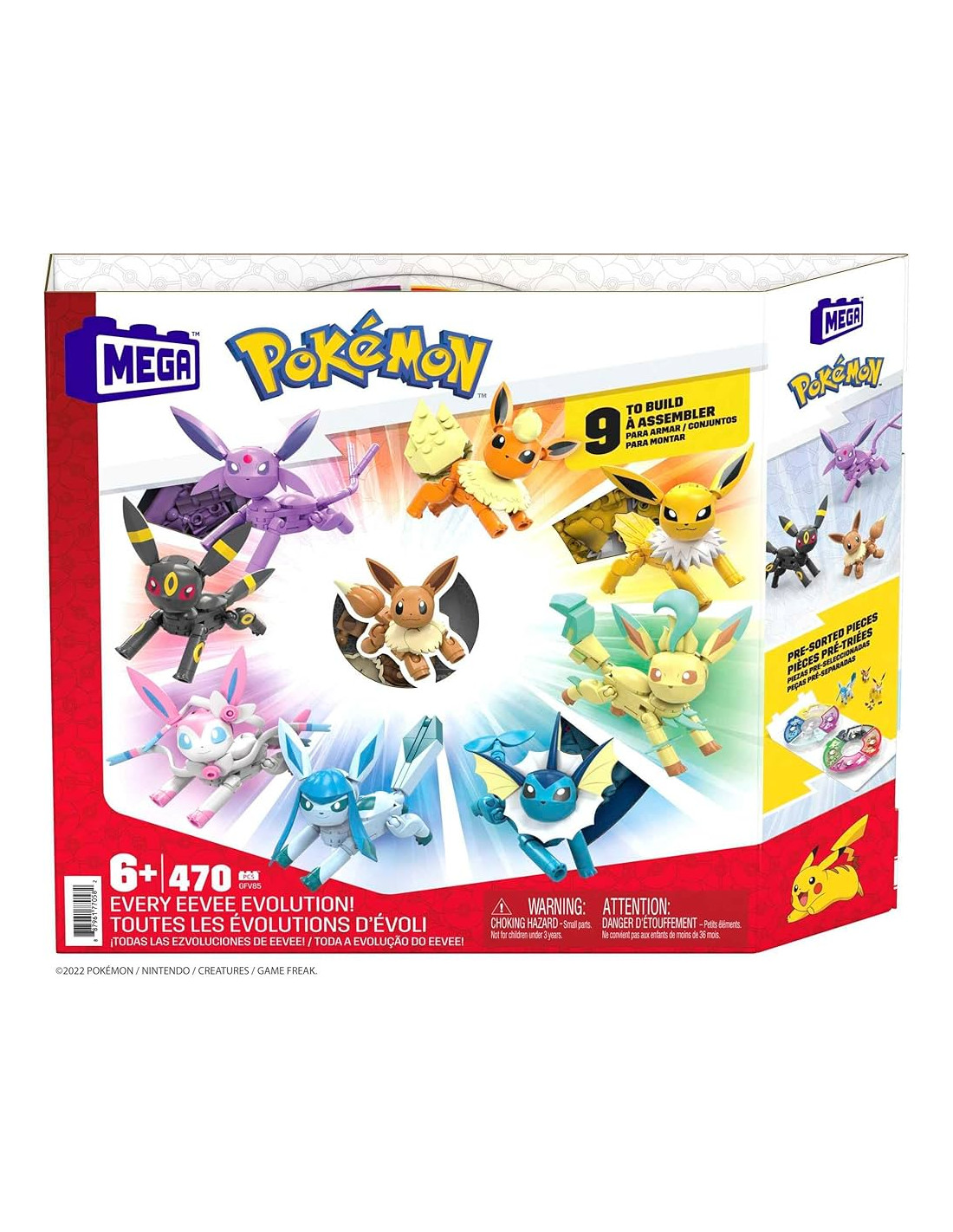 Desata el increíble poder de Eevee y construye sus 9 evoluciones! Las evoluciones de Eevee se muestran aquí en todo su esplendor! Construye toda la pandilla, de Vaporeon y Espeon a Glaceon y Sylveon. Hay una evolución de Eevee para todo el mundo. Tus Pokémon son completamente articulados, por lo que puedes realizar todas las poses que quieras y mostrarlos como nunca antes. Después, lanza una descarga de ataques de colores a tu desconcertado rival! Cada evolución de Eevee tiene su propio es...