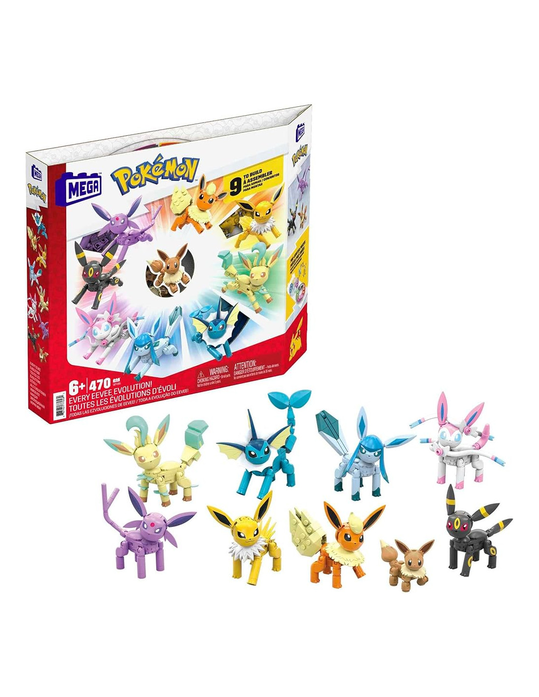 Desata el increíble poder de Eevee y construye sus 9 evoluciones! Las evoluciones de Eevee se muestran aquí en todo su esplendor! Construye toda la pandilla, de Vaporeon y Espeon a Glaceon y Sylveon. Hay una evolución de Eevee para todo el mundo. Tus Pokémon son completamente articulados, por lo que puedes realizar todas las poses que quieras y mostrarlos como nunca antes. Después, lanza una descarga de ataques de colores a tu desconcertado rival! Cada evolución de Eevee tiene su propio espacio de un color específico en el innovador embalaje. Ahora, tus amigos y tú podéis construir vuestra evolución favorita y combatir.