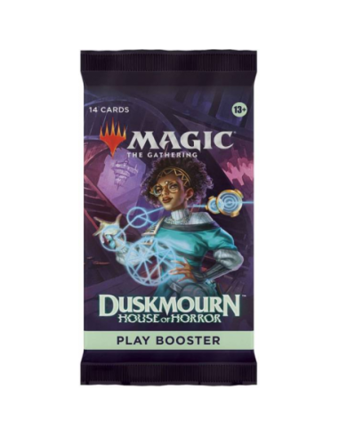 When you’re trapped in the endless halls of Duskmourn, the only way out is through. Band together with plucky survivors and battle your way to the heart of the House. This Duskmourn: House of Horror Play Booster Box containing 36 Play Boosters, perfect for both Limited play and opening packs just for fun. Each Play Booster contains 14 Magic: The Gathering cards and 1 Token/Ad card or Art card. Each pack includes 1–4 cards of rarity Rare or higher and 3–5 Uncommon, 6–9 Common, and 1 Land cards. 1 card of any rarity is Traditional Foil. A Traditional Foil Mythic Rare can be found in 1% of boosters and a Traditional Foil Land replaces a Land in 20% of boosters.
